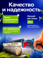 Очень понравилось качество пластика из которого изготовлен корпус пилы, удобная нескользящая рукоять с возможностью использования как правой, так и левой рукой. Удобный и качественный механизм натяжки цепи. Мощный безщёточный электродвигатель который практически бесшумный.