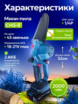 Мини-цепная пила бесщеточная будет отличным выбором для мелких работ, предоставляя возможность быстро и эффективно справляться с различными задачами. Аккумуляторные пилы обеспечивают долгую работу без перерыва. Благодаря современным аккумуляторам вы можете использовать инструмент на удаленных участках без необходимости искать электрические розетки.