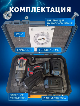 Отличный гайковёрт. Смотрел обзоры, соответствуют заявленным характеристикам. Корпус металл, тяжёлый, прочный нет люфтов, пластик качественный. В руке лежит хорошо, ручка удобная. Инструкция на русском.